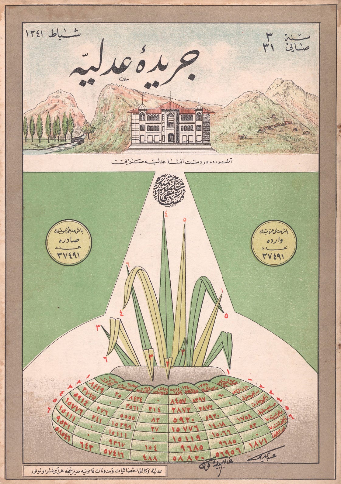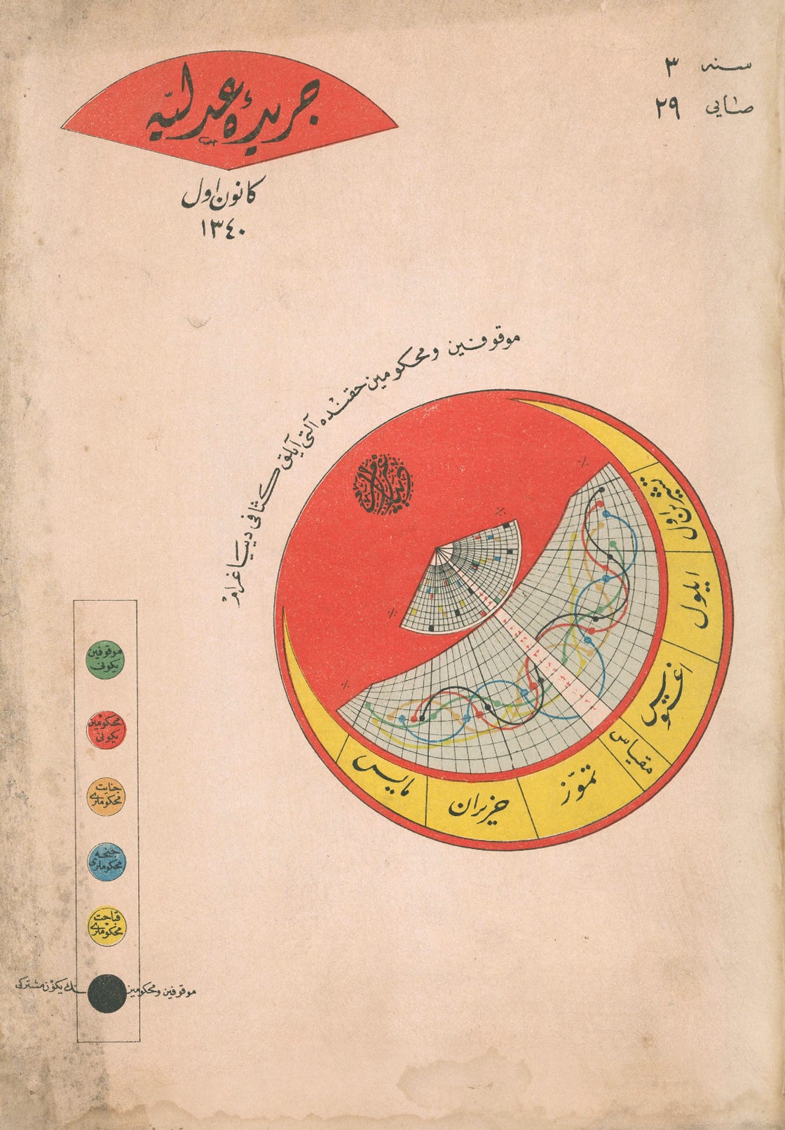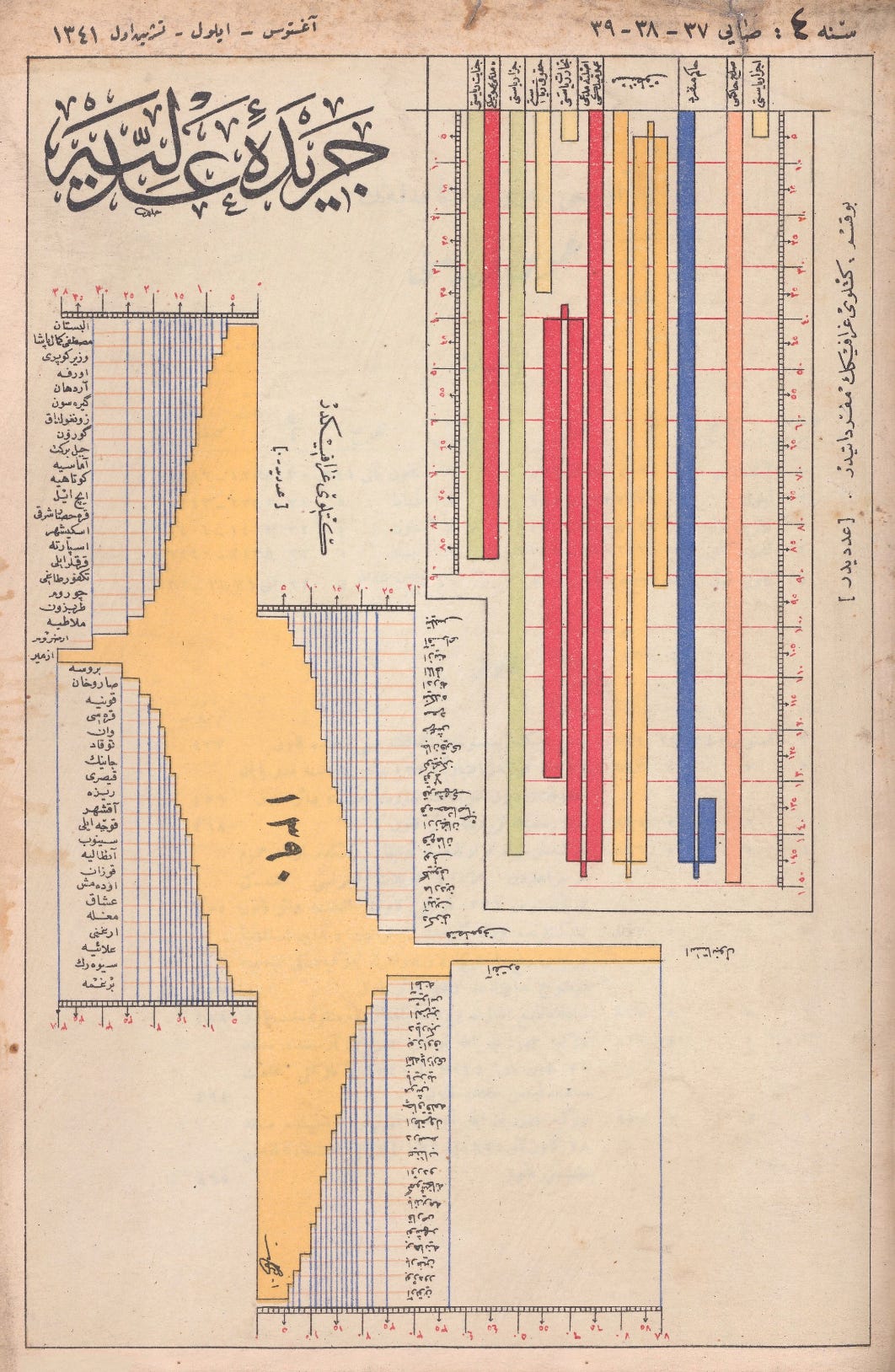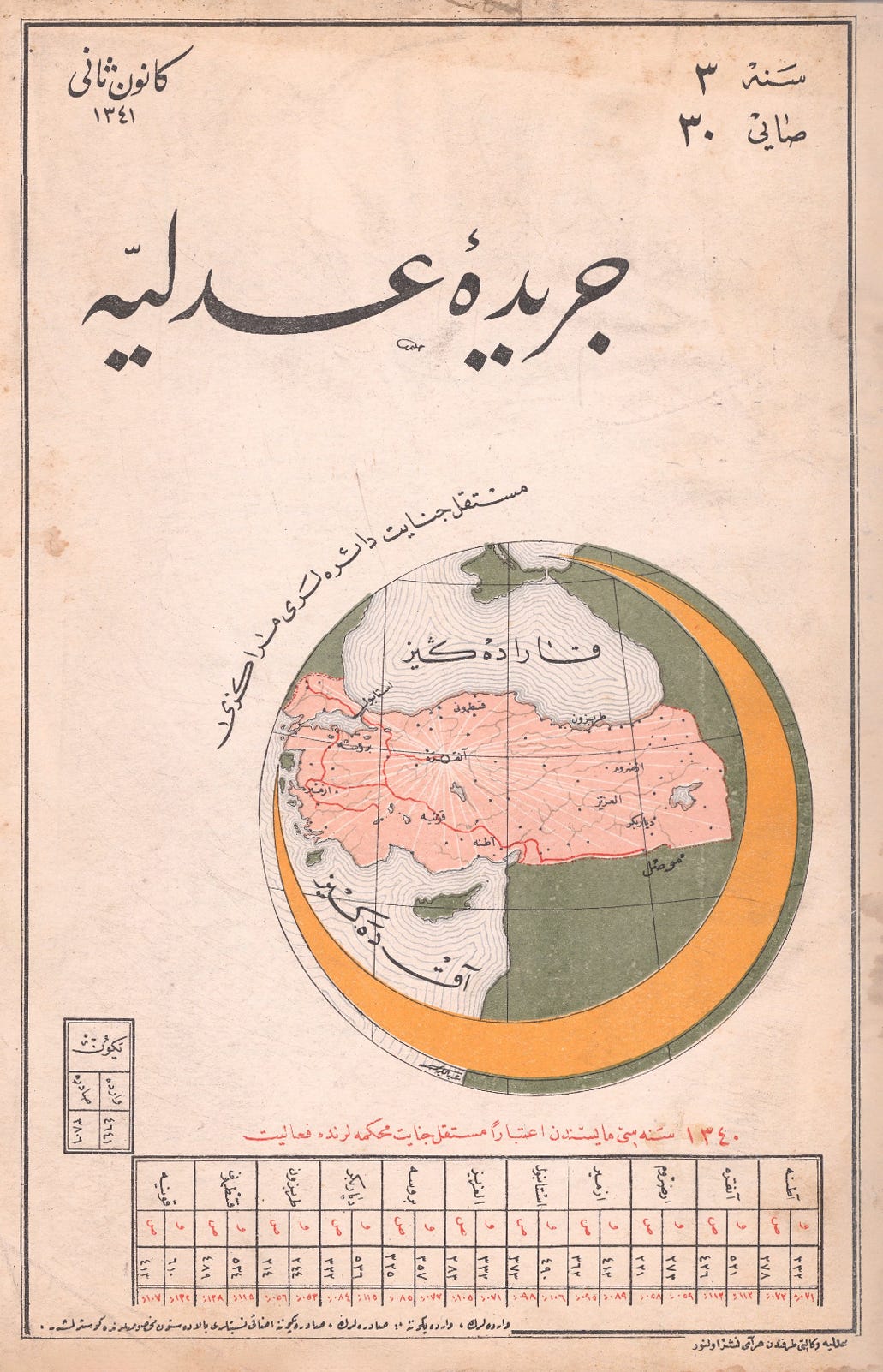 Today’s collection is a set of Ottoman-era data visualizations from Cerîde-i Adliyye, “The Justice Gazette,” a Ministry of Justice publication printed in Türkiye in the mid-1920s (thanks to chart-maker and -enthusiast Juweek Adolphe of Gourmet Data, who shared them in a design-y Slack group I’m in.)